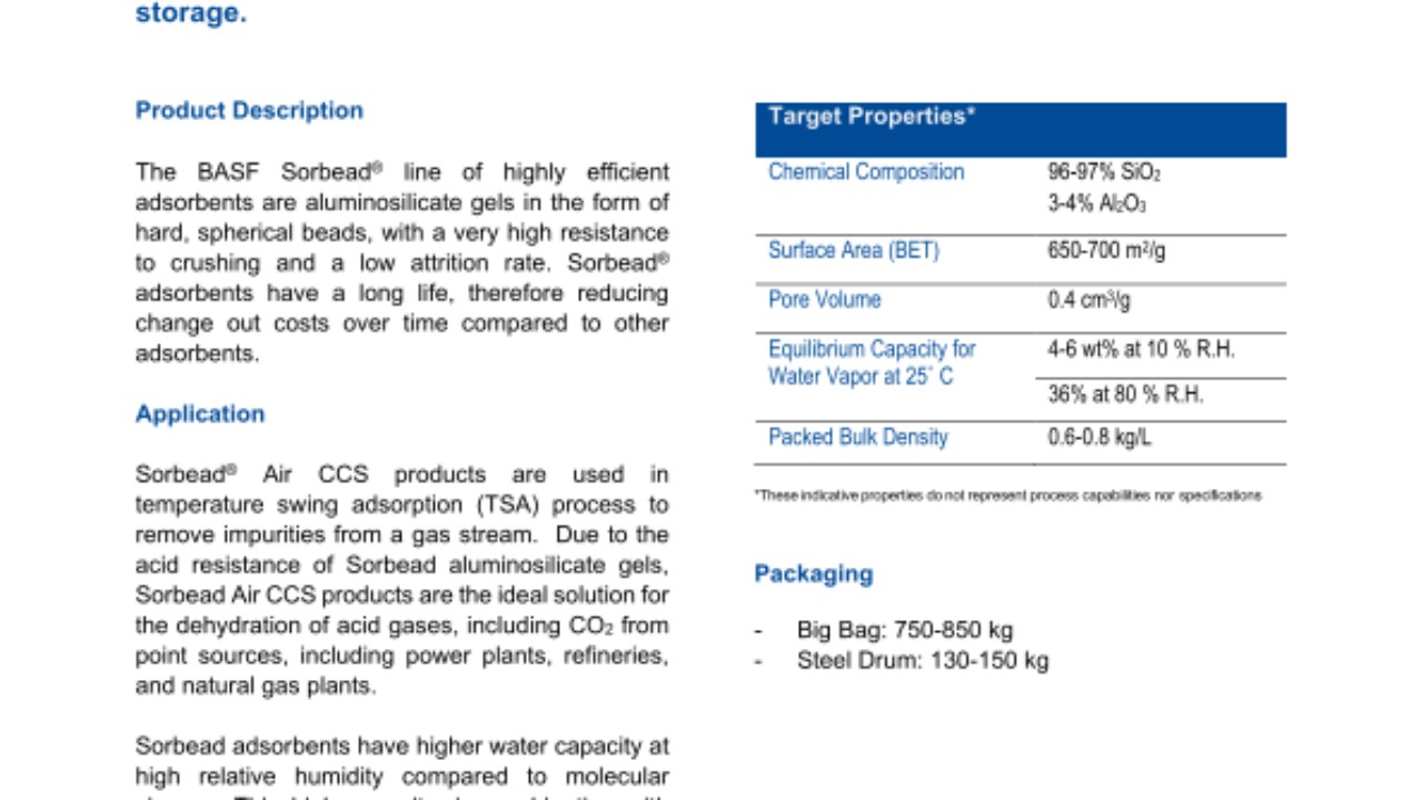 BASF offers various adsorbent solutions, but Sorbead® is uniquely suited for CO2 capture applications