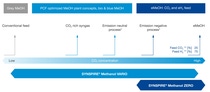| Target application | CO2 rich feeds, PCF optimized MeOH plant concepts, bio & blue MeOH as well as grey MeOH | eMeOH: CO2 and eH2 feed |