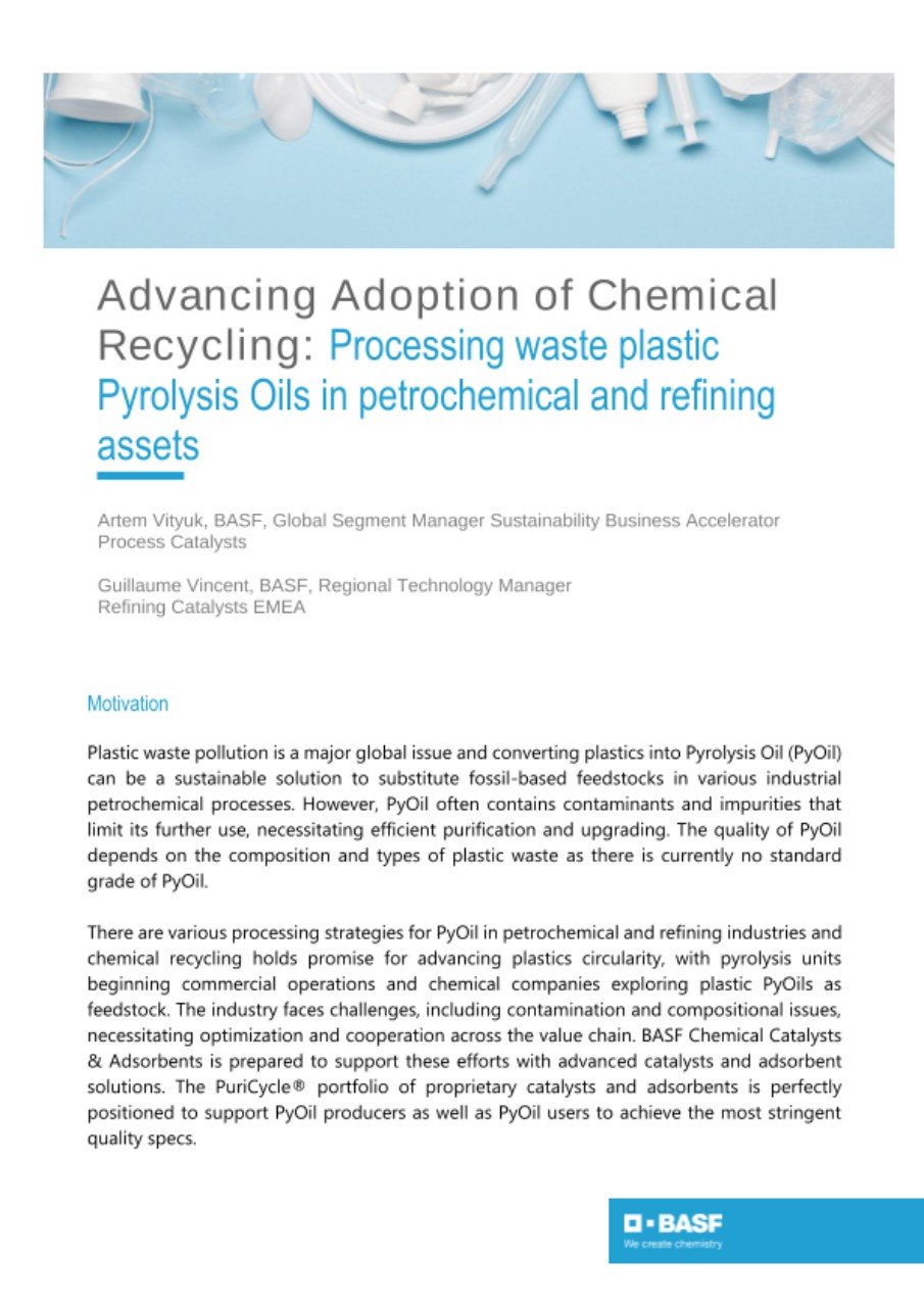 BASF offers advanced high-performance catalysts and adsorbents for purification of waste plastics pyrolysis feeds.